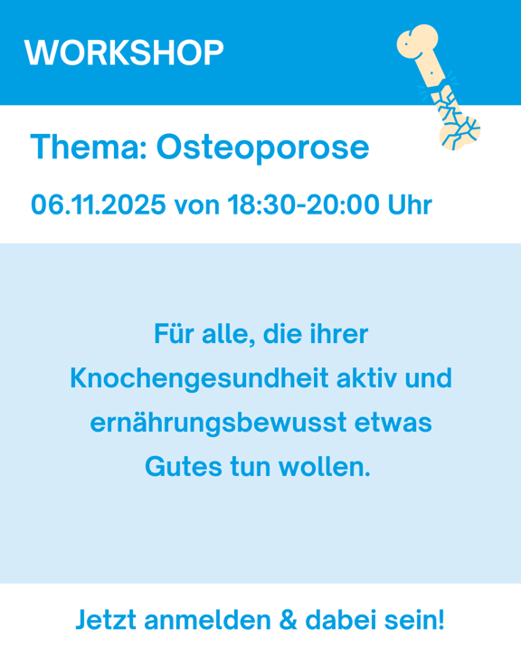 Workshop Osteoporose – Für alle die ihrer Knochengesundheit aktiv und ernährungsbewusst etwas Gutes tun wollen 🦴😊